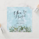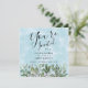 A beautiful watercolor, painted in a blue sky design, provides the backdrop for this invitation... trimmed with pretty eucalyptus and greenery, and finished with simple elegant typography script. Your guest will find a matching watercolor background on the back, with all the shower details.