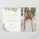 Announce your high school or university graduation with this trendy greenery graduation announcement photo card featuring hand painted watercolor eucalyptus leaves and gold calligraphy script. Personalize these cards with your own custom photo and personalized text.