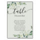 Eucalyptus Wedding Table Seating Chart Table Name Number