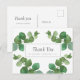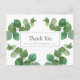 Fresh green eucalyptus leaves frame your wedding thank you with your family name set in classic elegant typography. The reverse features your wedding thank you message, names and return address.