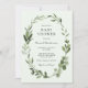 Baby Shower invitation featuring a watercolor wreath of greenery and eucalyptus leaves on a pale mint green background. Customize with your information for the mama to be. Click "click to customize further" to change the font style, size or colour.