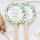 Our garden chic wedding program fan features your ceremony details in elegant lettering, encircled by a wreath of watercolor eucalyptus leaves and green foliage. Reverse side lists the members of your wedding party with easily editable text fields. Coordinates with our Eucalyptus Wreath wedding invitation collection for summer, spring, outdoor or garden weddings. Use the template fields to add your ceremony and bridal party information, and then click "Customize It" to reposition elements if needed. Need help? Contact me via the "Ask this Designer" link on this page.