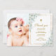 Eucalypyus & Gold Photo Baptism Thank You Card