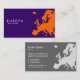 A business card with a map of Europe. Company details on the front with name and contact details on the back on a grey tonal version of the design.