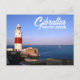 Postcard with Europa Point (Punta Europa) Lighthouse/Lighthouse in Gibraltar. Gibraltar is located in the south of Spain (geographically in Andalusia) and belongs to the United Kingdom.