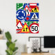 A collage of European traffic signs. Here's a fun poster for anyone who loves travel in Europe, especially road trips.