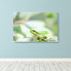 Canvas print of a green european tree frog, hyla arborea, sitting on leaves creating a green background. Taken in the Netherlands.