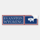 A graphic Wyoming State Flag with the text Evanston Wyoming on a Bumper Sticker.