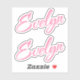 Evelyn name in cursive script font in pretty pink x2. Two copies of name.