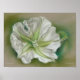 An ephemeral blossom of the moonflower vine is depicted in this artwork created in pastel shades of green, grey and white.