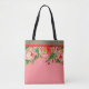 Elegant floral garden inspired fashion tote. This lovely quality reusable tote is embellished with beautiful hand painted floral patterns and vintage roses. A stylish carry-all for your day to day errands. Perfectly suited for the office or a trip to the gym - this quality custom carry-all is appropriate for every occasion. A truly elegant bright pink rose blossom pattern on a quality tote bag. Customizable in your choice of background colour, (this item shown in a dusty coral pink) size and style options. Practical and very stylish.