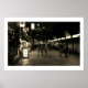 A sepia-tinted photograph of people enjoying the evening atmosphere of Dempoin Street in Asakusa, Tokyo.