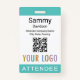 Personalize our professional attendee badge with your logo, attendee name, and other custom text. It's pvc plastic and available with a lanyard, clip, or a retractable reel. Designed in turquoise blue and other colours with a modern minimalist design by MISOOK. All colours are customizable. You can optionally add content to the back side. Easily customize the attendee title (VIP guest, visitor, speaker, etc). No minimum order quantity and no setup fee.