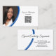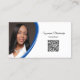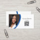 A blue border sets off the photo on this business card design featuring a photo placeholder on the left with template name, title and QR code on the right. The back includes a colour coordinated design with text fields for the business name and details. Replace the placeholder photo with your vertical format photograph and your QR code on the front. Fill in the template fields, remove text or click customize to select a font style, size, and colour you like. Use your QR code to send customers to a website, reviews page, photos or other special page. The placeholder photo is courtesy pixabay.com.