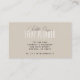 A simple modern, minimalist event planner business card featuring script typography on a beige background.