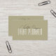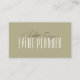 A simple modern, minimalist event planner business card featuring script typography on a sage green background.