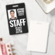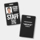 This simple and professional design features a black background. The template is easily customizable, just staff name, job title, employee ID. The bottom edge has a QR code that can be changed to any desired title. The back has your contact information and instructions for returning if found. This classic design works well for any type of event.