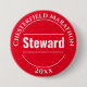 A badge for an Event Steward. Change the wording to your details. Steward badge. Official Steward badge. Red and white.