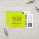 A simple concert or other event ticket template in a modern typography in a minimalist style in simple black on a vibrant lime green background. The template can easily be customized with your event details including date, time, venue and other custom ticket or event information (such and price, terms, arrival details and your event program). You can also easily upload your event QR code to the template for further information about the event from your own website.