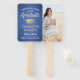 Ajoutez une touche personnalisée cool à une fête de fin d'études à l'université ou au lycée avec ces photos personnalisées de fans de main bleu, or et blanc. Le design comprend un arrière - plan en acier inoxydable brossé bleu, une photo du diplômé, une typographie moderne stylisée, la calligraphie manuscrite de style, et un message personnalisable lisant "Félicitations à notre diplômé". Le texte en bas inclut l'année de classe, le nom de l'école, et une ligne optionnelle pour le diplôme, les distinctions honorifiques, ou la citation inspirante préférée, merci maman et papa, ou d'autres informations. Tout le texte est simple à personnaliser. Veuillez noter que l'or est imprimé en couleur et non en métal. Fait une élégante idée customisée pour les faveurs et décorations de la fête de remise des diplômes. Parfait pour afficher une photo préférée, comme une photo de haut niveau ou une image de la cérémonie de début. Félicitations au diplômé !