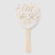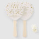 Un élégant éventail à main en forme de palette de mariage rose blush avec des confettis dorés et un espace pour vos initiales et peut-être votre ordre de cérémonie au verso.