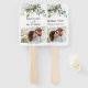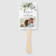 Elégant Aquarelle moderne Botanique Verdure Mariage Les ventilateurs à main comprennent les feuilles d'eucalyptus, le feuillage botanique vert, feuilles bleus poussiéreux et d'autres belles verdure botanique. Noms, Mariage Date & Couple Photo sur le front. Merci et photo sur le dos.