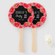Et elle va à l'autel ou fête un anniversaire. Un ventilateur à main avec vos détails et une bordure de roses rouges aquarelle contre un arrière - plan noir ou toute couleur que vous choisissez. Une façon amusante de rester cool et de remercier les invités d'être venus à votre douche de mariée sur le thème Derby ou de changer le libellé et l'utilisation pour une fête d'anniversaire ou toute occasion. Voir les invitations, assiettes, serviettes, étiquettes de boissons, boîtes de fête et plus dans notre magasin.