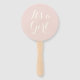 Chic rose vif et rayures d'ivoire script Baby shower, genre révéler Ventilateur main Texte personnalisableC'est une fille