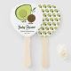 Ventilateurs à la main pour un baby shower avec des personnages souriants d'avocatiers et de dessins animés à la fosse d'avocat. Les deux personnages heureux font partie d'un design vert et blanc avec des mots personnalisables. Cet article fait partie d'une collection de baby showers-fêtes qui comprend une invitation, des serviettes, et plus. Customisez ces articles, ajoutez-les à votre panier et prenez un baby shower heureux !