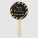 Éventail Bandes noires et or avec fête d'anniversaire blanc
