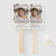 Celebrate your graduate in style with these custom graduation hand fans featuring a trendy, whimsical bow design. This double-sided fan allows you to showcase a favorite senior portrait, framed by a charming ribbon illustration. The template is set with a neutral palette of brown and cream, but all colors are fully editable, making it easy to coordinate with specific school colors or party themes. Personalize the design by adding the graduate's name and class year for a truly unique keepsake. These fans are perfect for keeping guests cool at outdoor ceremonies or serving as memorable party favors for friends and family. © Kimbellished, LLC