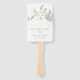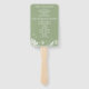 Branche avec sauge vert fleurs programme de mariage Ventilateur à main. Cette conception spéciale de ventilateur à main pour un mariage est vraiment inoubliable, avec un bel arrangement de fleurs éthérées avec des fleurs vert sauge et blanc comme point focal. Le look tendre et élégant est idéal pour une journée spéciale. A l'envers, le même étalage floral est présenté en blanc contre un arrière - plan vert.