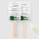 Ces beaux fans de programme de mariage sont élégants, romantiques, classe et de bon goût. Le design se compose d'un seul rose vert émeraude à long tige, allongé sur son côté, réfléchissant dans un bassin d'eau avec vagues et ondulations. La typographie présente une calligraphie en écriture noire dentée, et il y a de la place pour des détails sur la cérémonie, la fête de la mariée, et un bref merci.