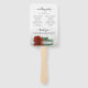 Ces beaux fans de programme de mariage sont élégants, romantiques, classe et de bon goût. Le design se compose d'un seul rose couleur orange rouille ou rouge brûlé sur son côté, réfléchissant dans un bassin d'eau avec vagues et ondulations. La typographie présente une calligraphie en écriture noire dentée, et il y a de la place pour des détails sur la cérémonie, la fête de la mariée, et un bref merci.