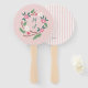 Ce ventilateur de programme de mariage est doté d'une crête fleur sauvage rustique avec monogramme personnalisable et police de style écriture sur le devant et d'un arrière - plan rayé avec date (ou autre texte) sur le dos, pour donner aux invités mariages un confort et un petit sac à main.