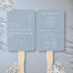 Ce ventilateur de programme de mariage minimaliste bleu poussiéreux peut être personnalisé avec vos informations dans la typographie moderne. Conçu par Thisisnotme©