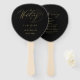 Ces éventails élégants de programme de mariage présentent un faux design de typographie dorée sur un arrière - plan noir. Personnalisez avec les noms des mariés et des mariés et la date du mariage sur le devant et les détails de votre cérémonie sur le dos. Conçu par Susan Coffey.