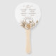 Élégant Boho Neutral Floral Accents Programme de mariage Ventilateur à la main. "Restez Cool et élégant avec ces fans du programme de mariage Boho" Ces élégants fans de main sont la touche parfaite pour une cérémonie de mariage d'inspiration boho. Dotés de délicats accents floraux neutres sur un arrière - plan blanc immaculé, ils ajoutent une touche de charme boho et de fonctionnalité à votre journée spéciale. La première présente le programme de mariage, y compris un accueil chaleureux, les noms du couple, la date du mariage, l'emplacement et l'ordre de la cérémonie. Le dos présente les détails de la fête de mariage et un message de Merci du couple. Ces ventilateurs magnifiquement conçus garderont vos invités cool et confortables tout en leur fournissant toutes les informations nécessaires.