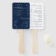 This wedding program hand fan features a deep navy blue& with color theme. Delicate eucalyptus springs in fine line art add a soft botanical accent. The design is elegant, modern, and easy to read. This hand fan program is ideal for outdoor or summer weddings and pairs perfectly with a navy blue and greenery wedding theme.