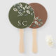 Elégant Mariage Fans de main avec des détails feuillus vert sophistiqués et modèle monogramme pour votre personnalisation. Décor de réception de mariage de Ricaso