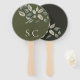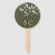 Elégant Mariage Fans de main avec des détails feuillus vert sophistiqués et modèle monogramme pour votre personnalisation. Décor de réception de mariage de Ricaso