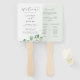 Cet élégant ventilateur de programme de mariage verdoyant est parfait pour un mariage simple. L'élégant design moderne présente un agencement botanique naturel d'eucalyptus, de feuilles et de plantes avec un accent subtil de lave-linge vert menthe. Indiquez le nom de la mariée et du marié, la date et le lieu du mariage, le message de remerciement, l'ordre de service et la fête de la mariée. Commandez vos programmes assemblés ou non assemblés.