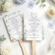 Keep guests cool in style with this romantic wildflower wedding program fan. Featuring delicate watercolor florals in soft blush, blue, and golden hues, this elegant design pairs timeless serif typography with graceful script accents for a look that feels both refined and garden-inspired.