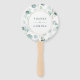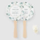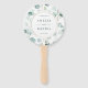 Ce ventilateur à main mariage est orné d'eucalyptus à l'aquarelle peinte et de feuilles verts botaniques avec cadre en cercle doré. Pour une personnalisation plus avancée de cette conception, cliquez sur Personnaliser Autre lien pour modifier la police, la taille et la couleur.