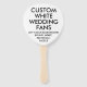 FANS de MARIAGE BLANC PADDDLE 5,75" personnalisés (ensembles de 10) Modèle vierge. Concevez, créez, créez les vôtres. Votre photo mariage, image, message, texte, nom de mariée et de mariée, logo, graphisme, en couleur pleine imprimer individuellement sur les deux côtés du ventilateur. 5,75 po de diamètre. Disponible en carton blanc et écru (personnaliser à n'importe quelle couleur). Assemblage simple requis - poignées en bois et 4 points de colle par ventilateur inclus (disponible pré-assemblé pour un supplément). Disponible Arrondi, en forme de Coeur, Pagaie ou Rectangle. Idéal pour les mariages, mais aussi pour un Sweet 16, anniversaire de Quinceanera, ou tout événement chaud, d'été ou de plein air, et pour le marketing d'entreprise et d'entreprise ou d'utilisation promotionnelle.