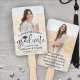 Ajoutez une touche personnalisée élégante à une célébration de fin d'études au lycée ou à l'université avec des éventails rectangulaires personnalisés élégants. Ce modèle est simple à personnaliser avec les photos, le nom, l'année de promotion et l'établissement scolaire du diplômé. Incluez tout texte supplémentaire de votre choix, tel que le diplôme, les distinctions, merci maman et papa, ou une citation inspirante favorite. Les styles de police, les couleurs et l'opacité de la superposition peuvent également être personnalisés à l'aide de l'outil de conception Zazzle. Le design moderne minimaliste noir et blanc présente 2 photos du diplômé, une calligraphie script tendance et une typographie classique élégante. Créez votre propre souvenir de fête élégant et unique, parfait pour une fête de fin d'études en plein air ou une cérémonie de remise des diplômes. Fé