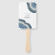 Tous les designs mariages ne sont pas égaux. L'agencement asymétrique des pièces de cet ensemble mariage frappant prouve que ce n'est pas une mauvaise chose ! Des bandes de couleur ondulées dans les tons allant du bleu poussiéreux au beige sablonneux avec un centre de cristal scintillant forment une géode/agate accent sur la plupart des pièces de l'ensemble. Le ventilateur à main "Programme ou Liste de Soirée de Mariage" du mariage ci-dessus comprend le plus un modèle pour ajouter vos détails de mariage pertinents. L'inverse vous permet également d'ajouter un message personnel, les noms de la mariée et du marié et la date du mariage. Recherchez ID647 pour voir toutes les pièces de coordination de cet ensemble.