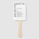 Ventilateur à main du programme de mariage moderne avec un design minimaliste noir et blanc avec vos noms dans une grande police le long du côté gauche et du dessus. Cette conception est assez simple pour un mariage officiel tout en faisant une déclaration audacieuse.