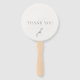 Un élégant ventilateur de main de mariage avec un design classique avec votre monogramme dans une police de script avec "Merci" dans une police de serif traditionnelle.