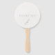 Un élégant ventilateur de main de mariage avec un design classique avec votre monogramme dans une police de script avec "Merci" dans une police de serif traditionnelle.
